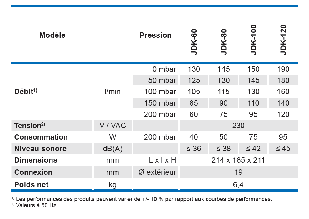 Débit d’air 60-130 L/min.