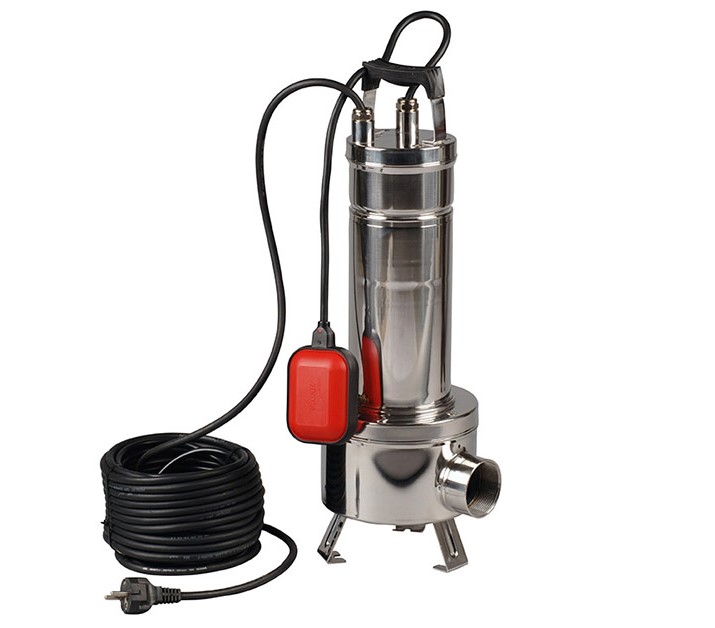 Pompe centrifuge submersible en acier inoxydable avec roue vortex en acier micro-moulé. Elle est adaptée pour le relevage des eaux d'égouts et des eaux usées en général contenant des solides d'un diamètre maximum de 50 mm.
