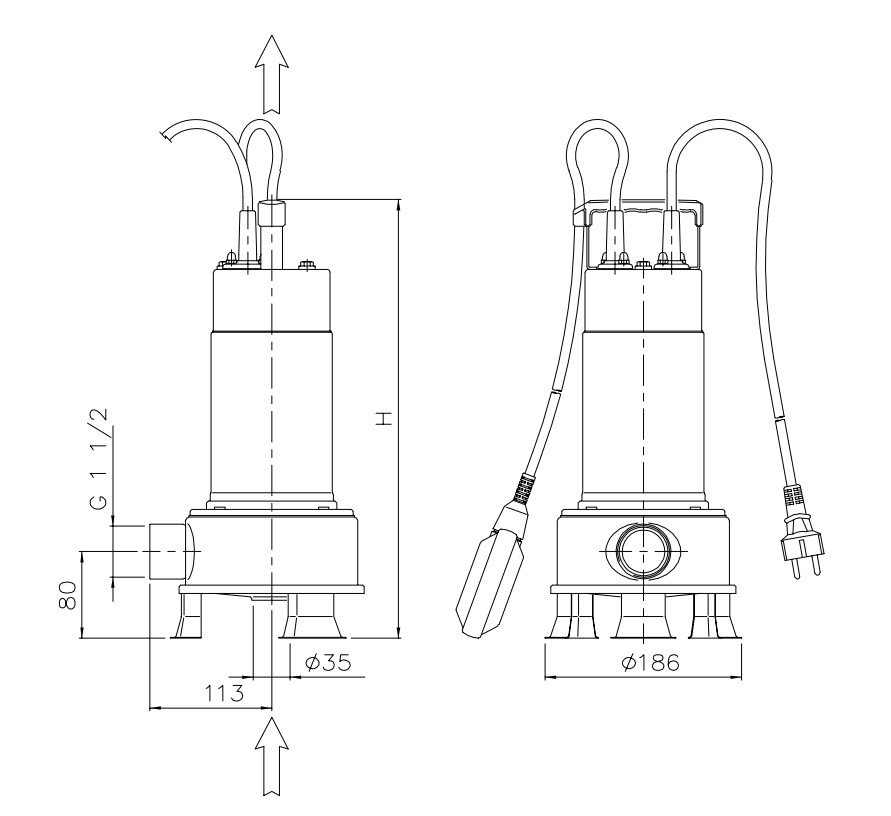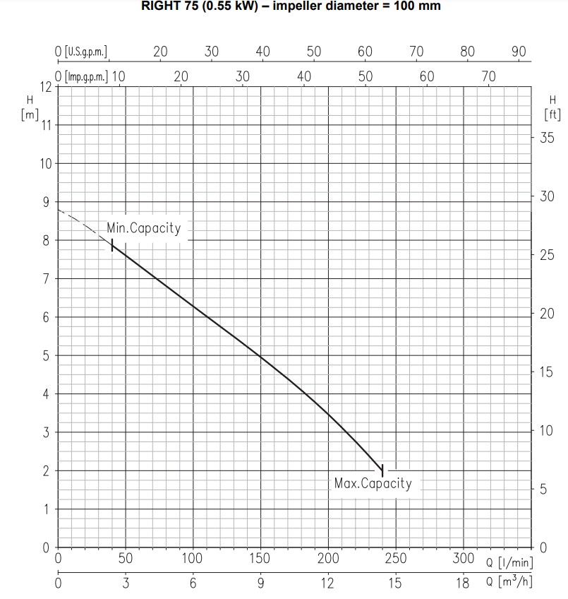 La Pompe EBARA Right 75 M pour eaux chargées est une pompe monophasée 230V de 0 à 18m3/h sans flotteur.