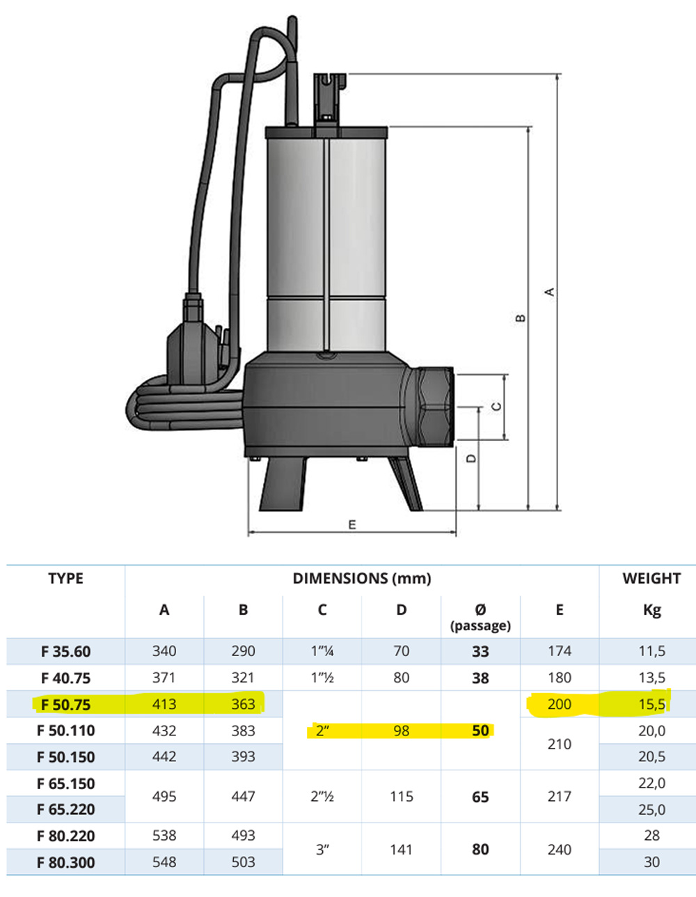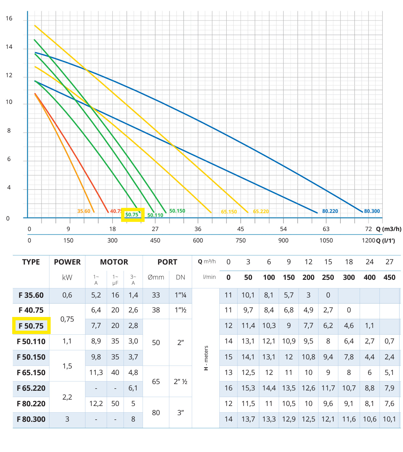 | Monophasée avec flotteur 0,75kW | VORTEX F50.75.1A |