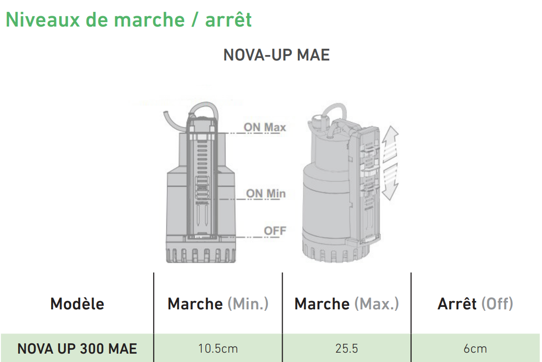• Le curseur de réglage permet de modifier le niveau marche/arrêt de la pompe.
